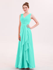 V-neck Chiffon Bridesmaid Gown with Cascade Skirt Spa