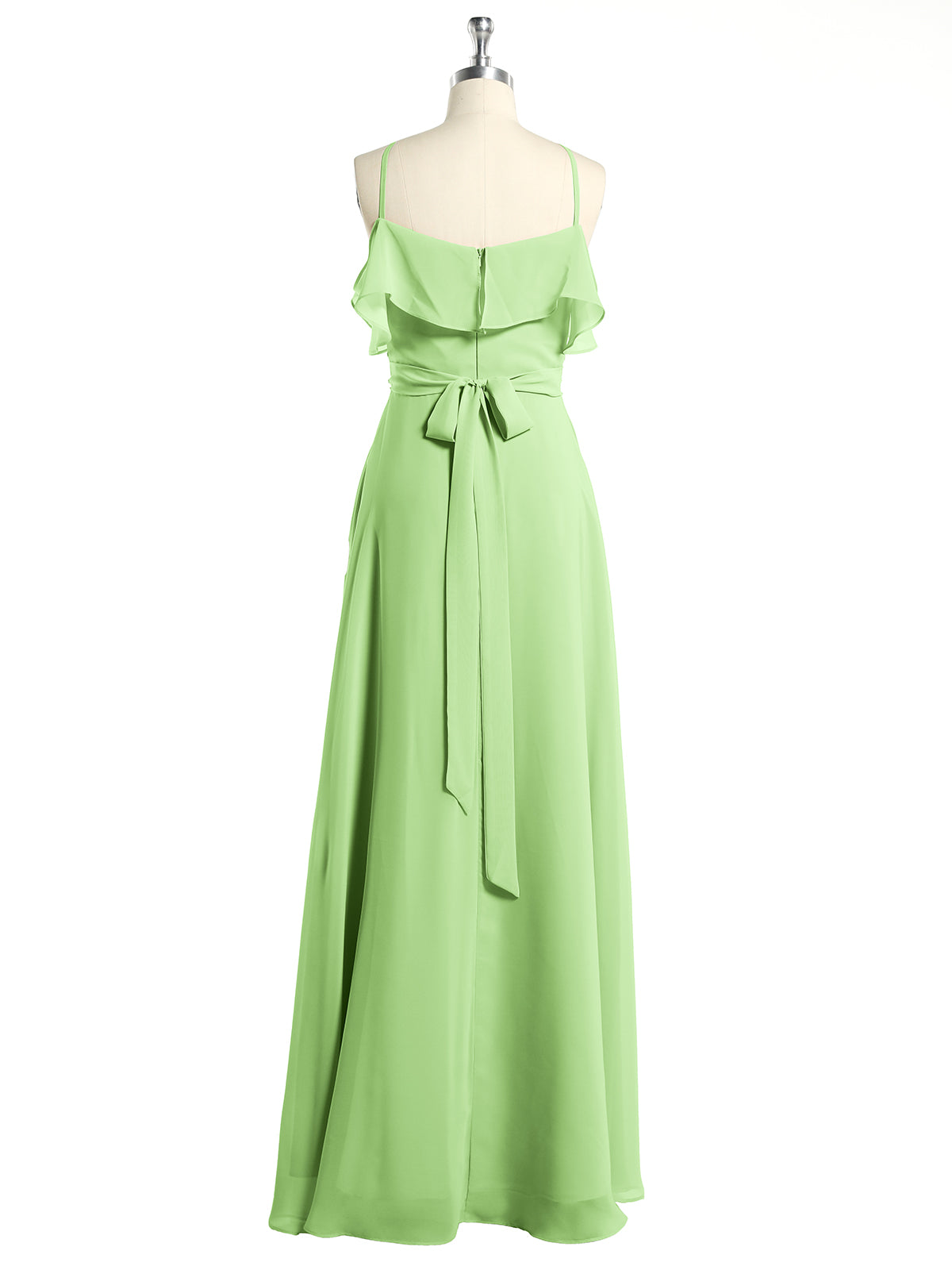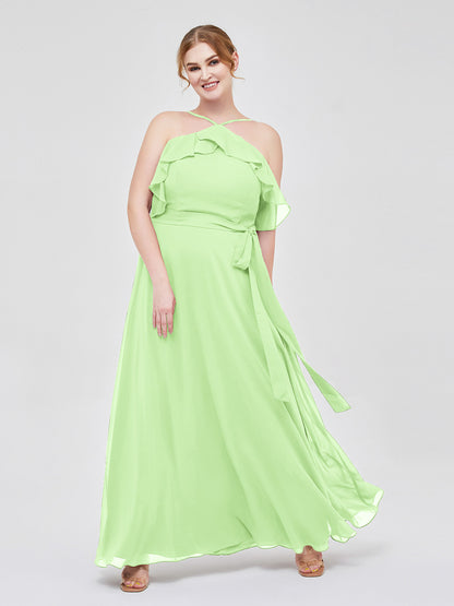 Y-neck Flutter Sleeves Long Bridesmaid Dresses Sage Plus Size