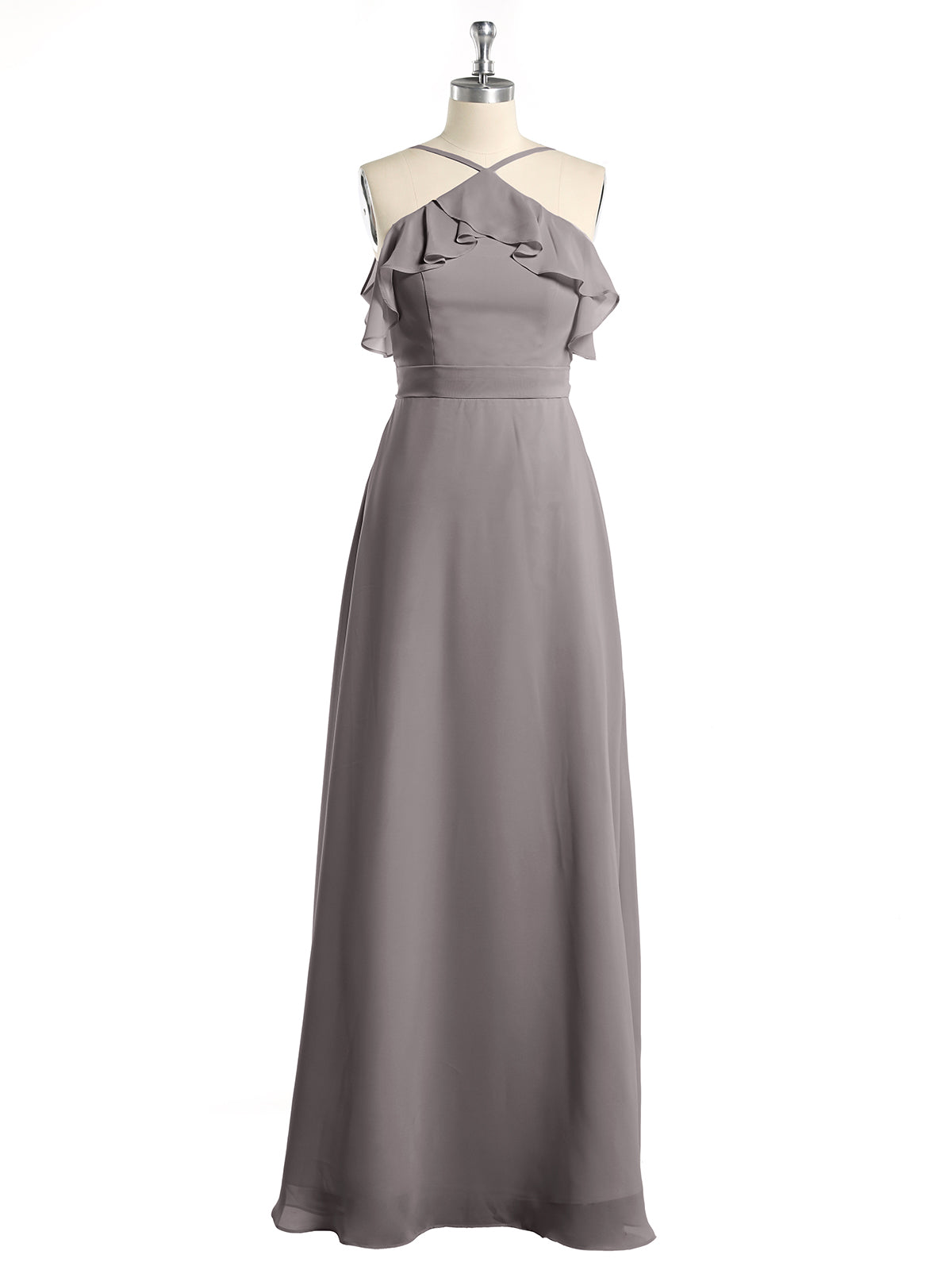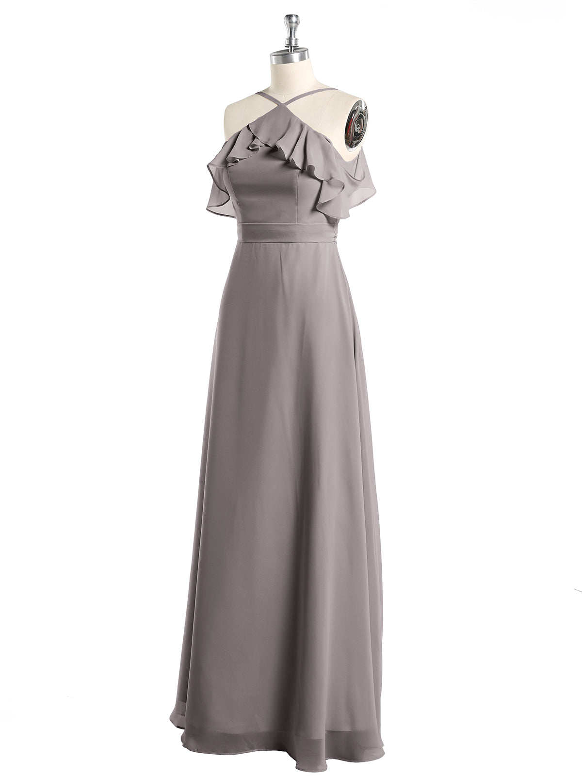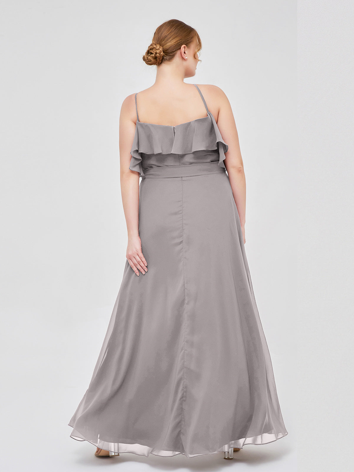 Y-neck Flutter Sleeves Long Bridesmaid Dresses Silver Plus Size
