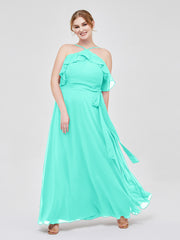 Y-neck Flutter Sleeves Long Bridesmaid Dresses Spa Plus Size
