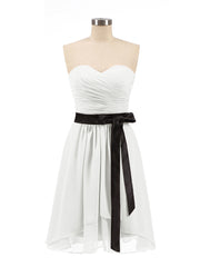 Sweetheart Neck Short Dress with Black Sash-Ivory