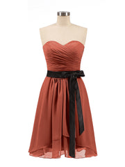 Sweetheart Neck Short Dress with Black Sash-Rust