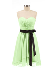Sweetheart Neck Short Dress with Black Sash-Sage