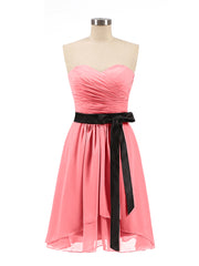 Sweetheart Neck Short Dress with Black Sash-Watermelon