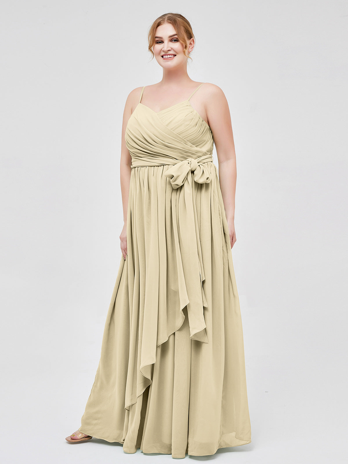 Spaghetti Strap Sweetheart Chiffon Dresses Champagne Plus Size