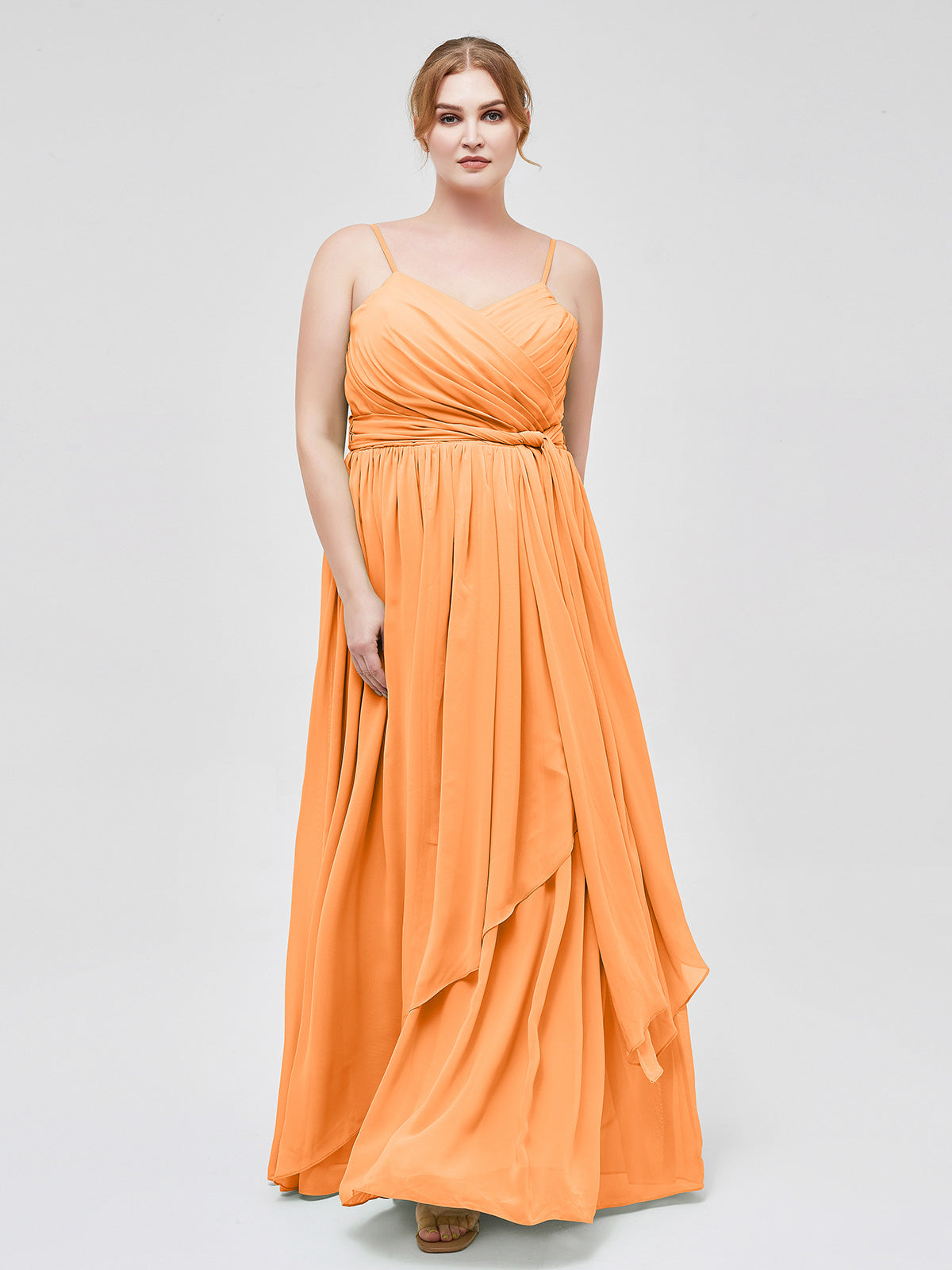 Spaghetti Strap Sweetheart Chiffon Dresses Orange Plus Size
