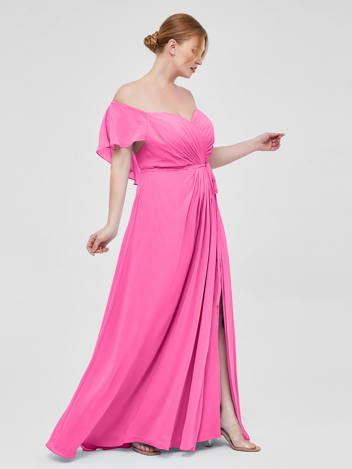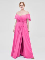 • Sally is beautiful long off the shoulder dress made of chiffon.