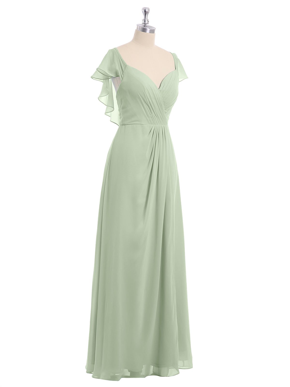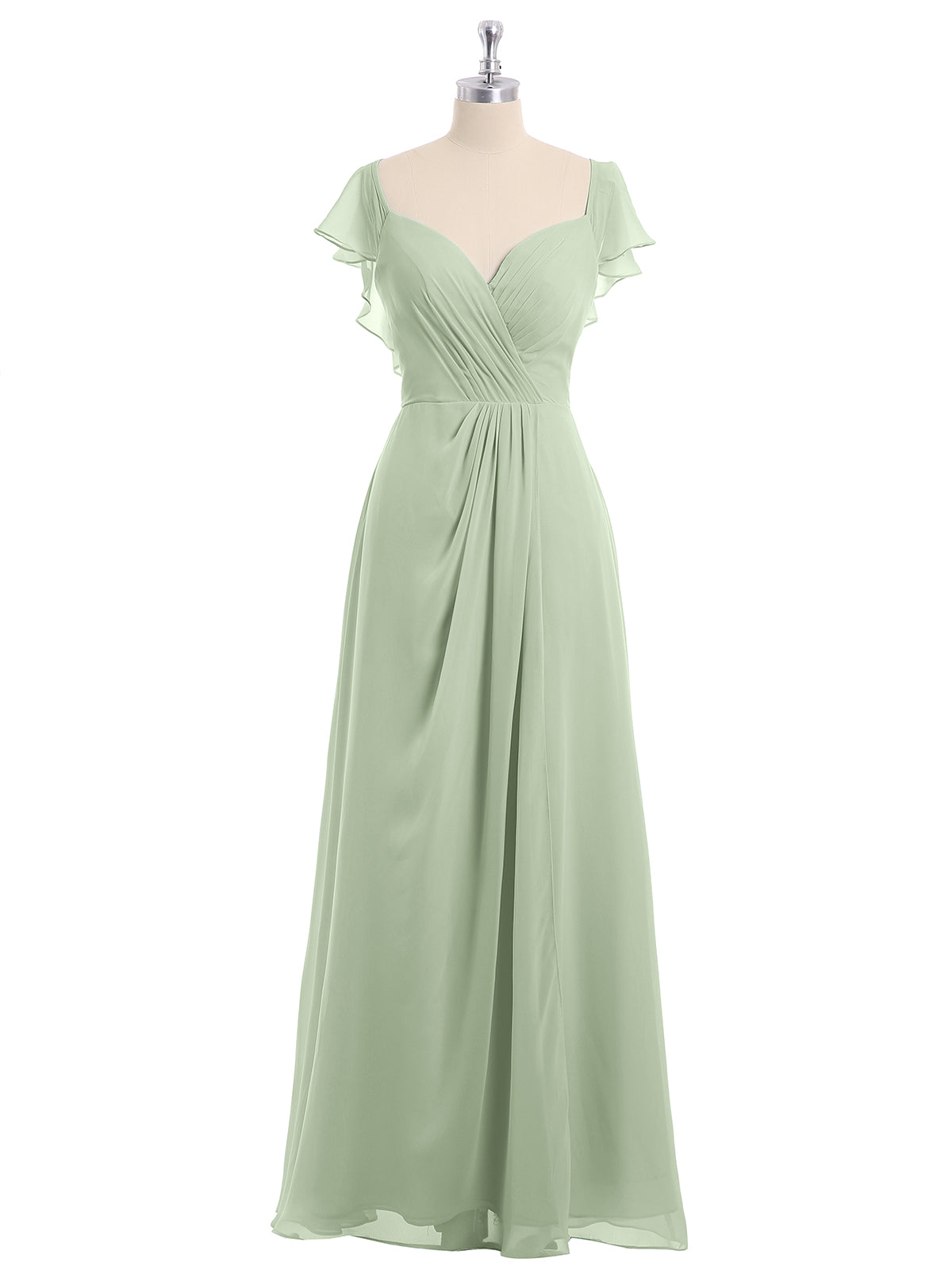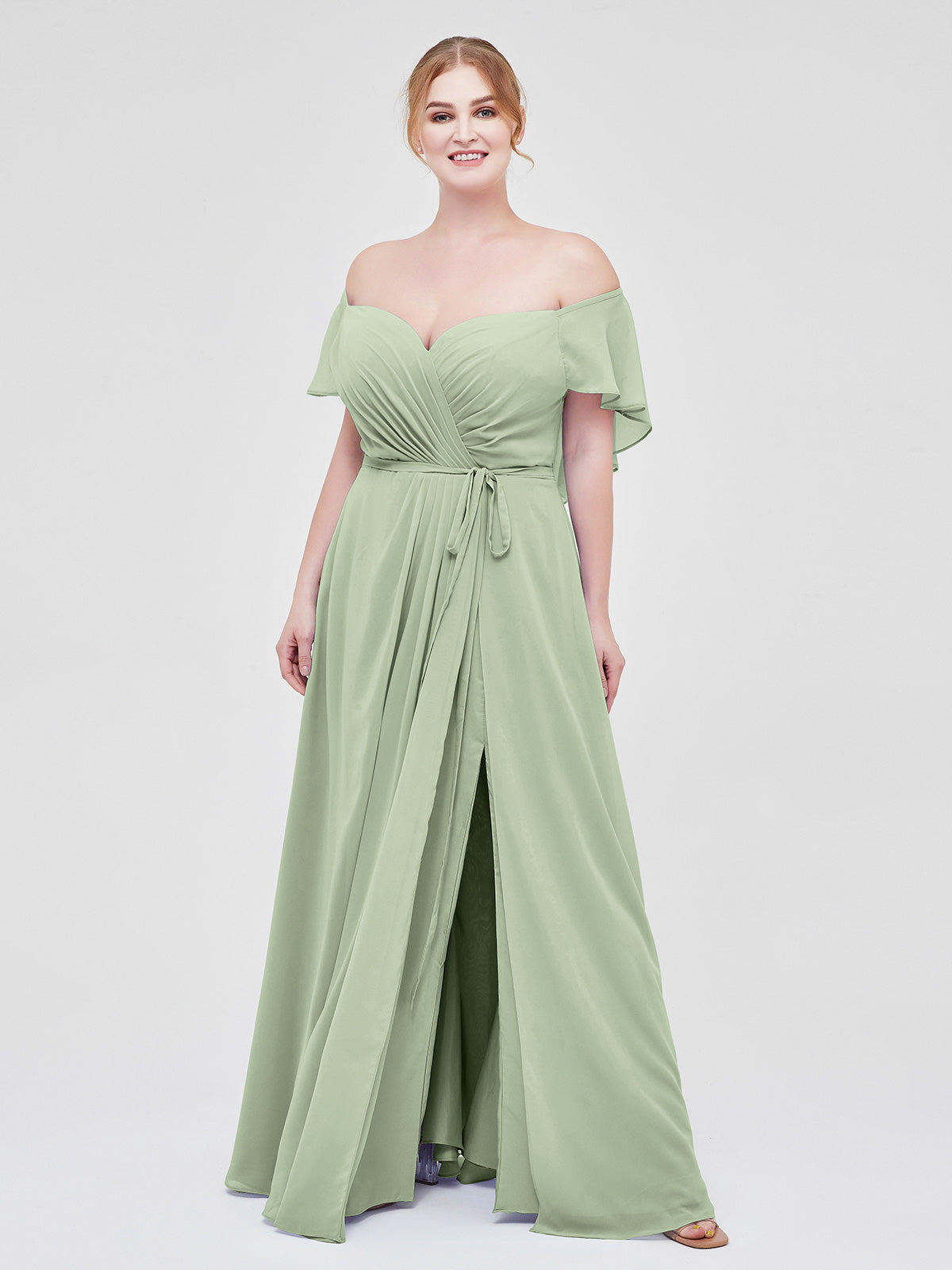 Cap Sleeves Chiffon Bridesmaid Dresses with Slit Dusty Sage Plus Size