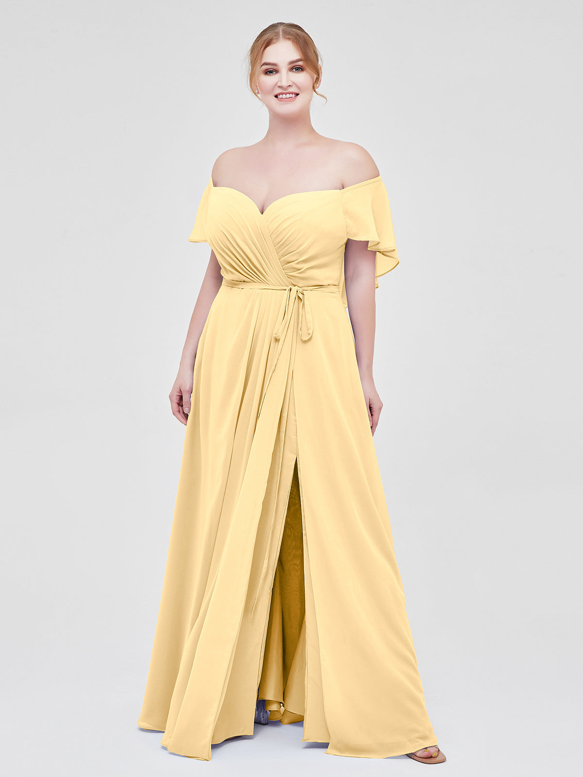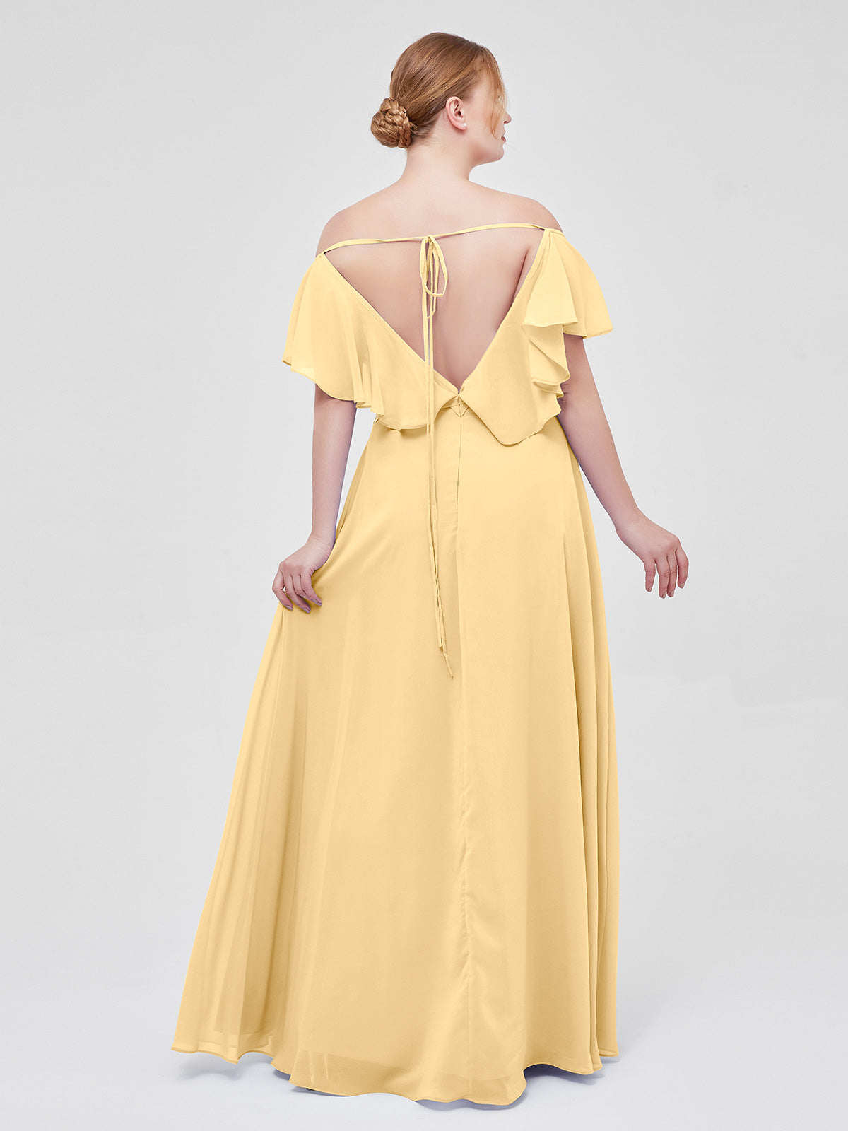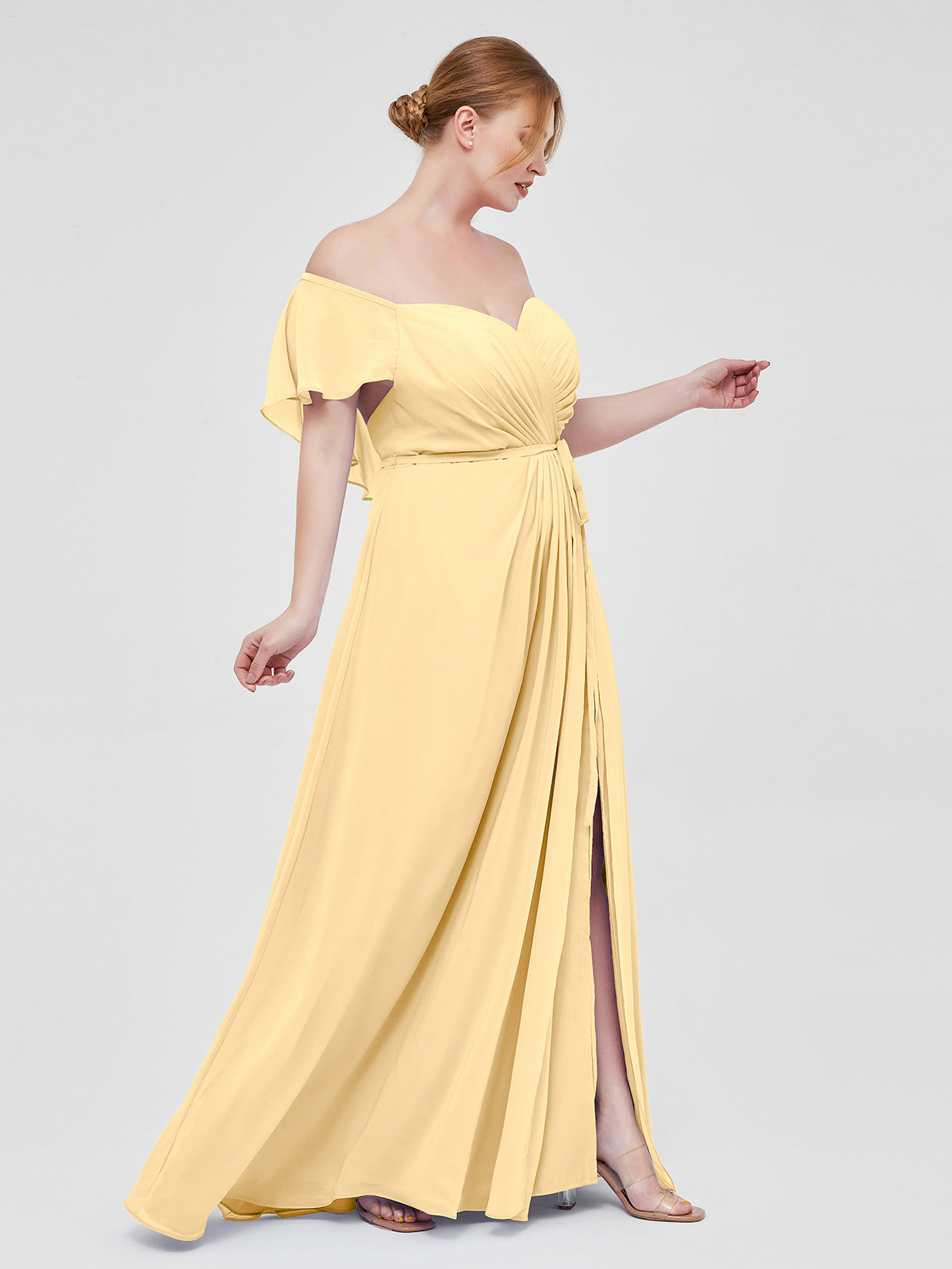 • Sally is beautiful long off the shoulder dress made of chiffon.
