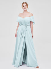 Cap Sleeves Chiffon Bridesmaid Dresses with Slit Mist Plus Size