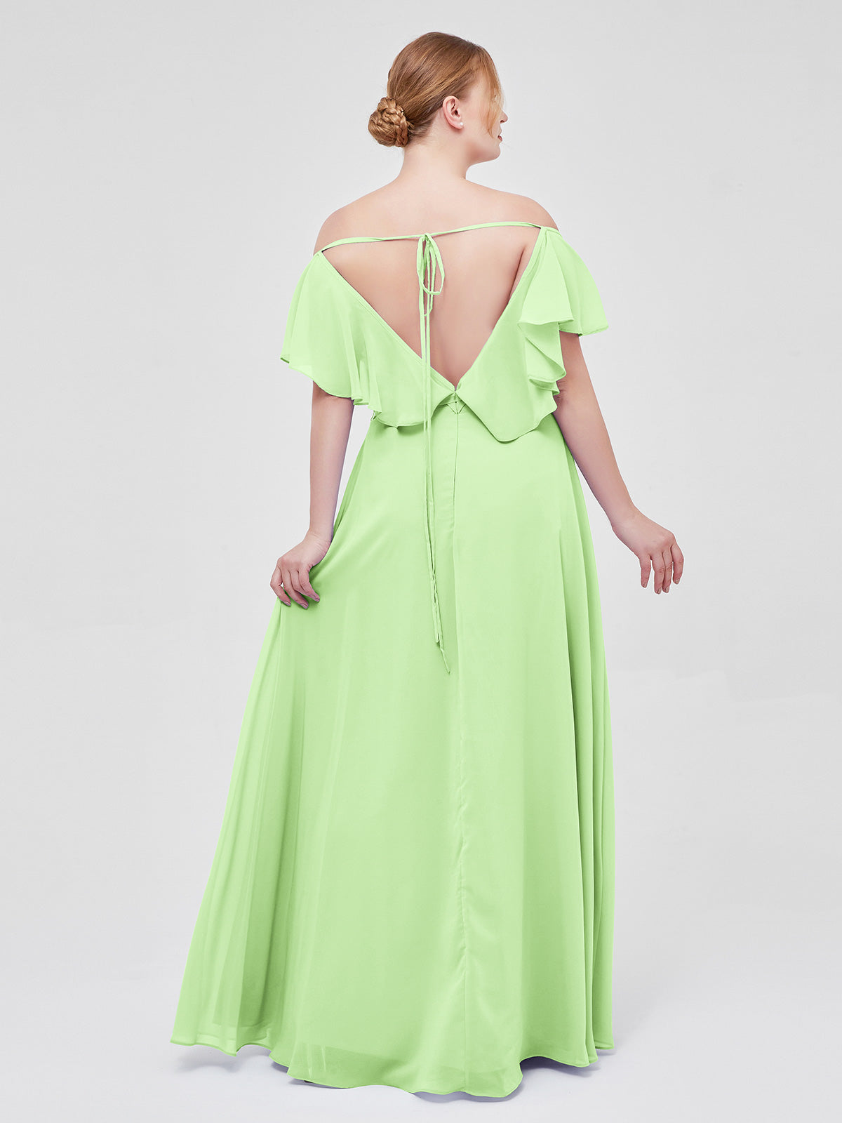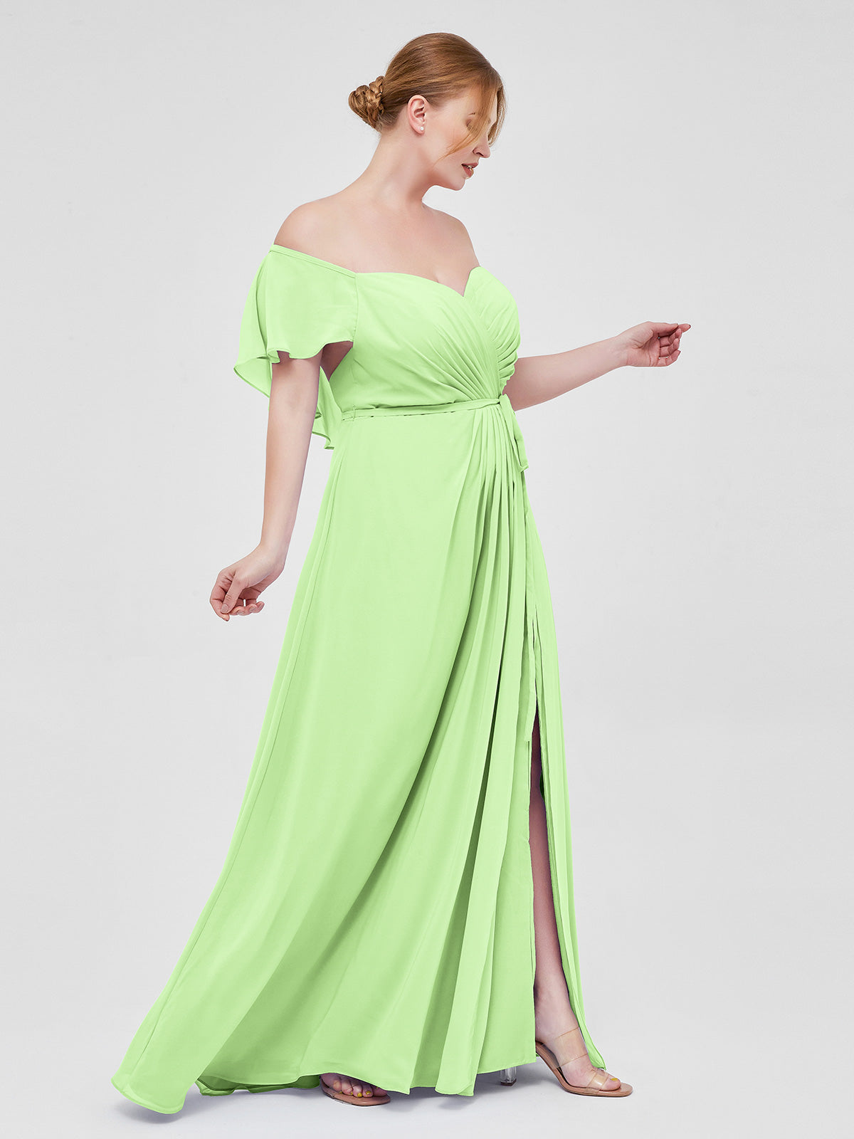• Sally is beautiful long off the shoulder dress made of chiffon.