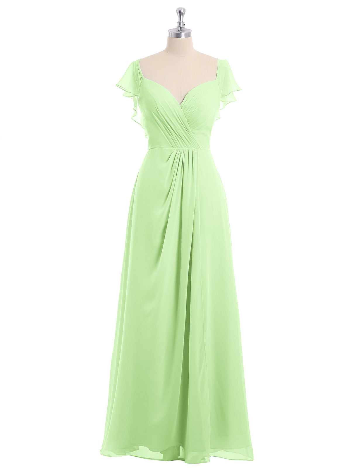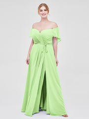 Cap Sleeves Chiffon Bridesmaid Dresses with Slit Sage Plus Size