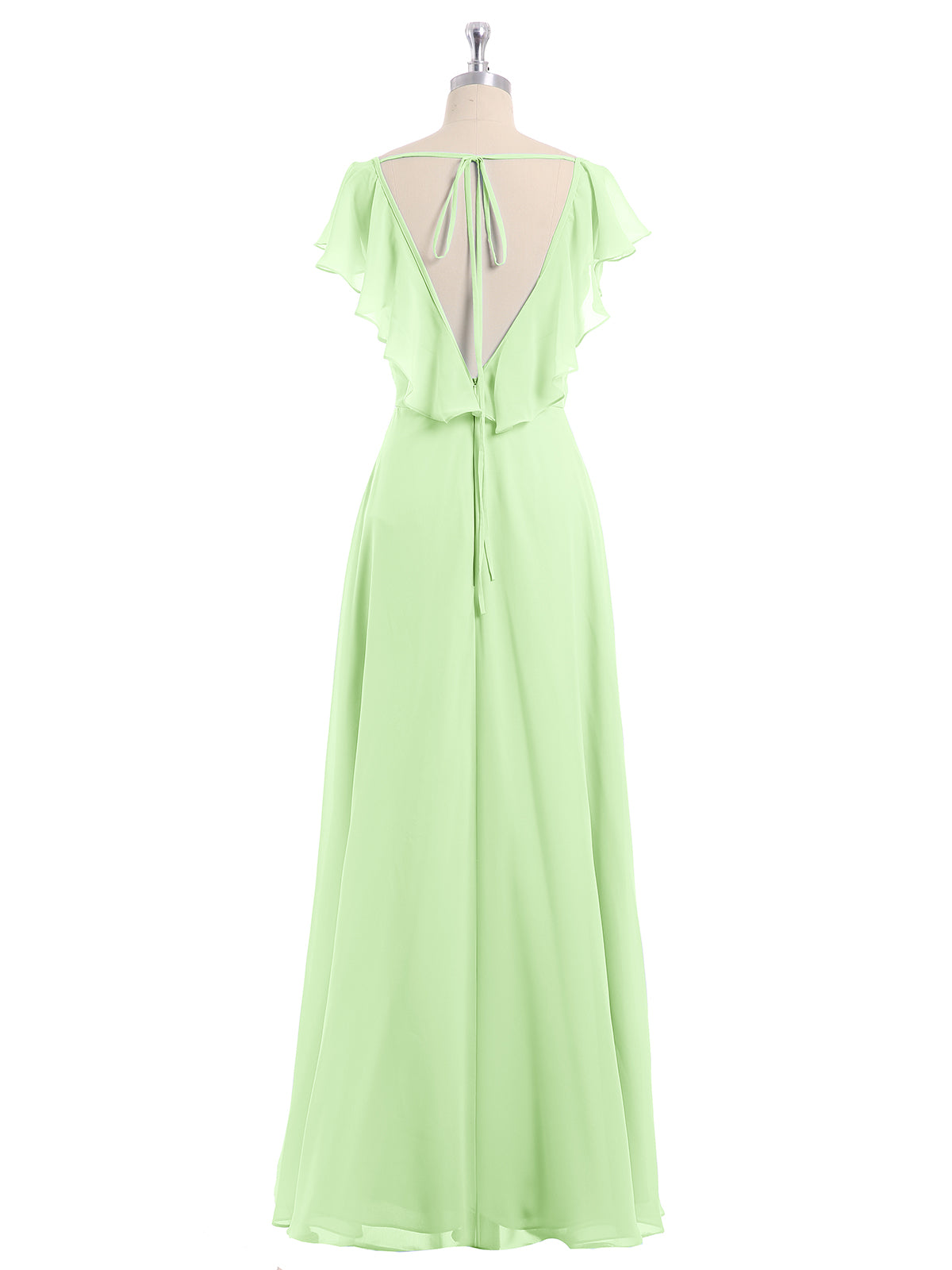 • The deep V neck on the back and backless style makes this dress stunning. The cascade shoulder design brings a sense of elegance.