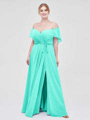 Cap Sleeves Chiffon Bridesmaid Dresses with Slit Spa Plus Size