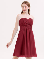Short Strapless Bridesmaid Dress with Sweetheart-Burgundy