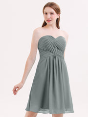 Short Strapless Bridesmaid Dress with Sweetheart-Steel Grey