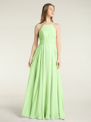 Low Back Simple Chiffon Birdesmaid Dresses-Sage