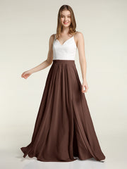 Ivory Lace Bodice Chiffon Skit Dresses with Slit-Chocolate