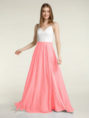 Ivory Lace Bodice Chiffon Skit Dresses with Slit-Flamingo
