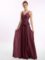 Spaghetti Strap Chiffon Dresses with Sash Bow-Cabernet