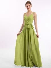 Spaghetti Strap Chiffon Dresses with Sash Bow-Clover