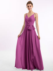 Spaghetti Strap Chiffon Dresses with Sash Bow-Orchid