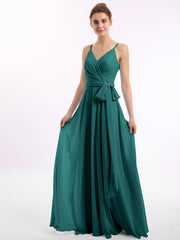 Spaghetti Strap Chiffon Dresses with Sash Bow-Peacock
