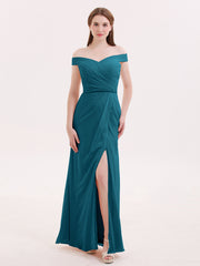 Chiffon Off Shoulder Dresses with Slit-Ink Blue