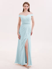Chiffon Off Shoulder Dresses with Slit-Mist