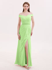 Chiffon Off Shoulder Dresses with Slit-Sage