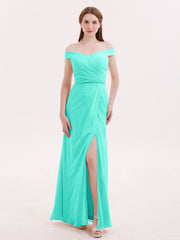 Chiffon Off Shoulder Dresses with Slit-Spa