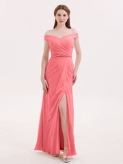 Chiffon Off Shoulder Dresses with Slit-Watermelon