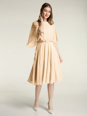 Scoop Neck Flutter Sleeves Short Chiffon Dresses-Peach