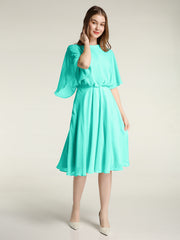 Scoop Neck Flutter Sleeves Short Chiffon Dresses-Spa