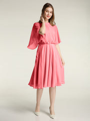 Scoop Neck Flutter Sleeves Short Chiffon Dresses-Watermelon