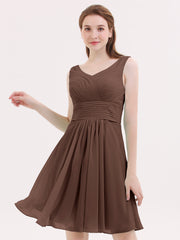 V Neck Chiffon Short Bridesmaid Dresses-Chocolate