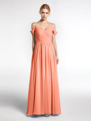 Chiffon Bridesmaid Dress with Pleated Bodice-Sunset