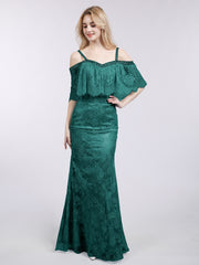 Spaghetti Strap Mermaid Lace Gown-Peacock