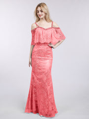 Spaghetti Strap Mermaid Lace Gown-Watermelon