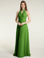 Halter Chiffon Long Bridesmaid Gowns with Low Back-Moss Plus Size