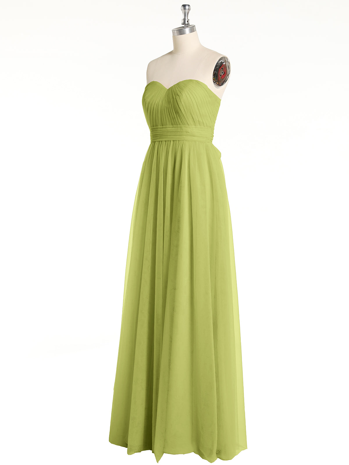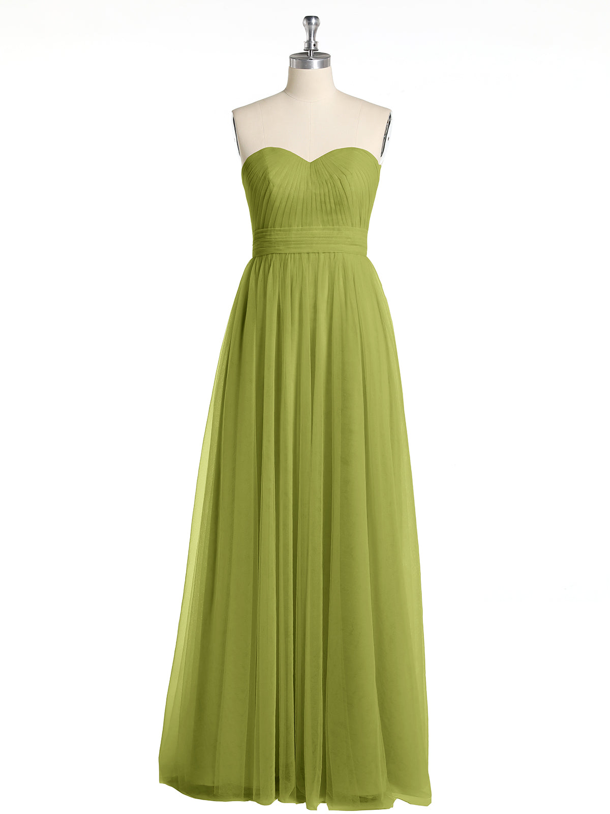 • The pleated upper bodice makes this tulle gown so elegant. And the sash plays an important role in style-making.