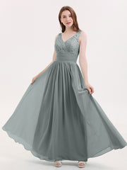 Lace and Chiffon Dresses with Open Back-Steel Grey Plus Size