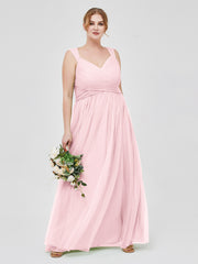 Cross-Pleated Tulle Long Dresses with Beaded Straps Blushing Pink Plus Size