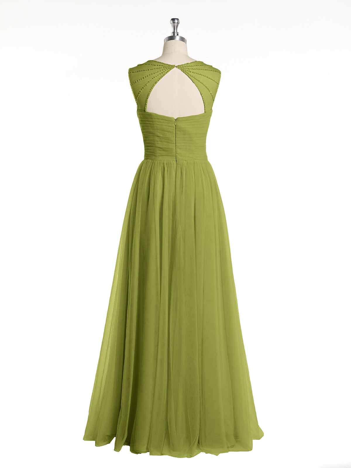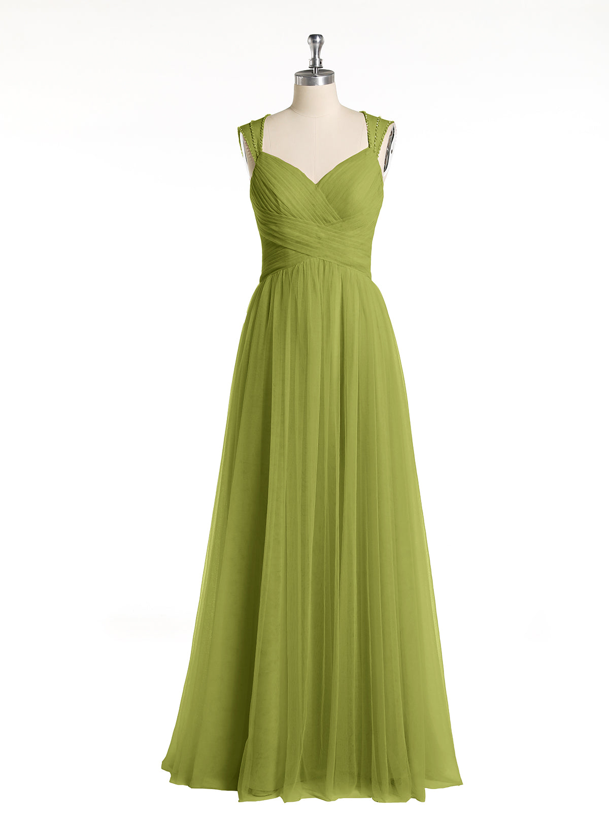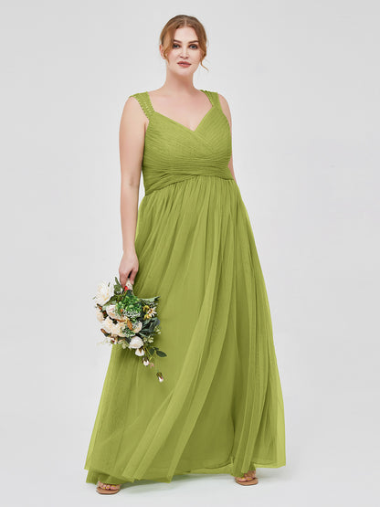 Cross-Pleated Tulle Long Dresses with Beaded Straps Clover Plus Size