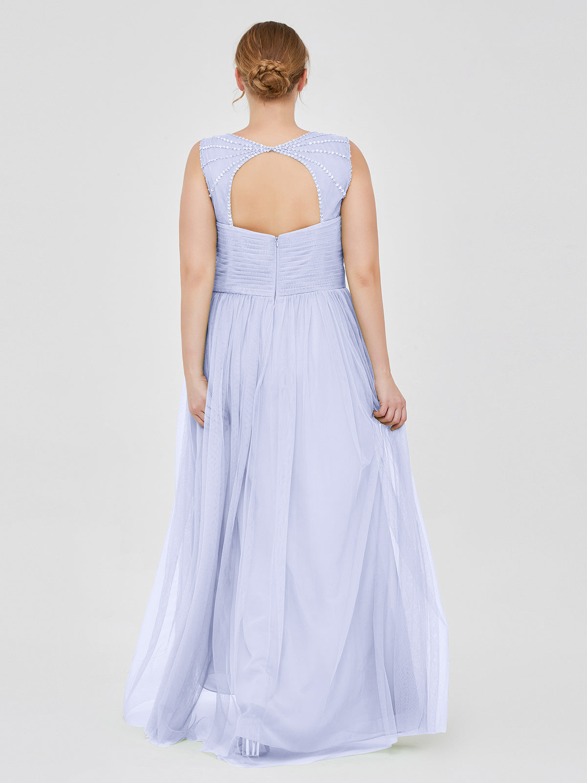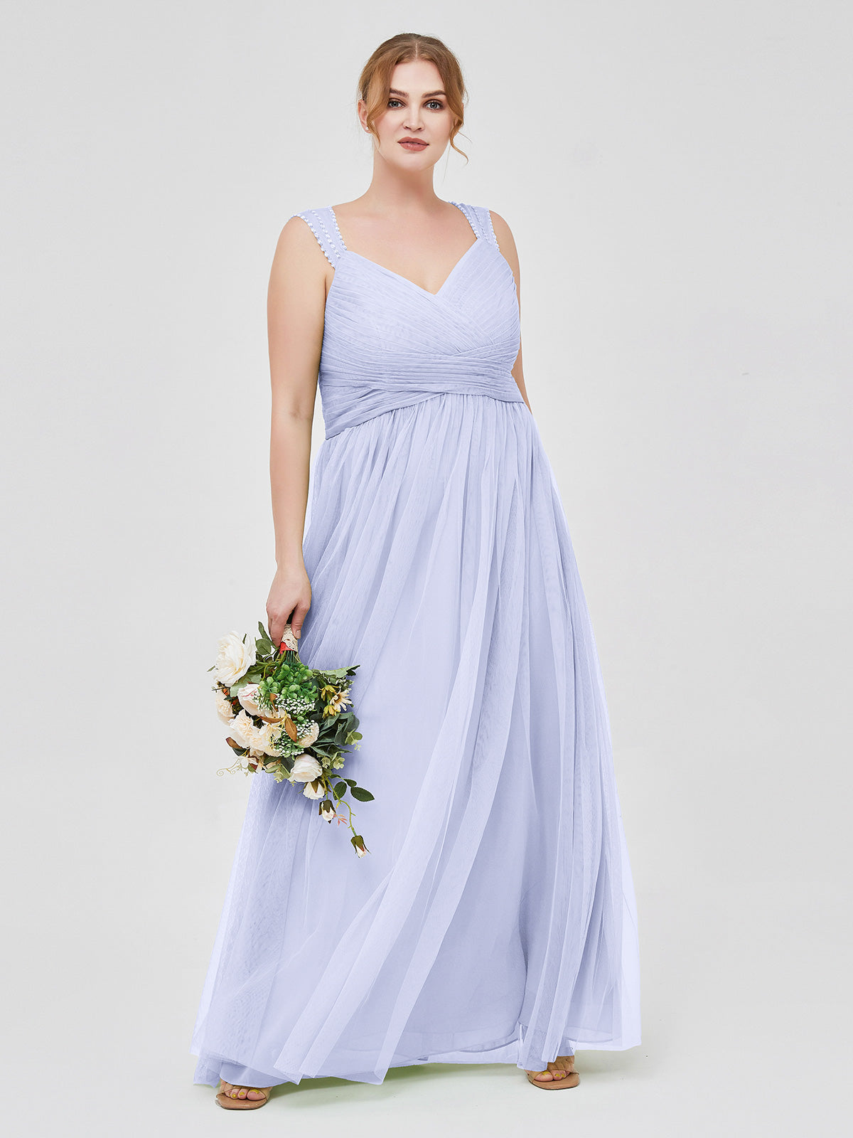Cross-Pleated Tulle Long Dresses with Beaded Straps Lavender Plus Size