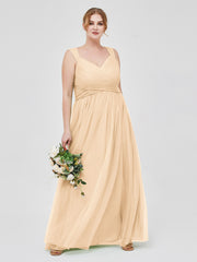 Cross-Pleated Tulle Long Dresses with Beaded Straps Peach Plus Size