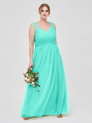 Cross-Pleated Tulle Long Dresses with Beaded Straps Spa Plus Size