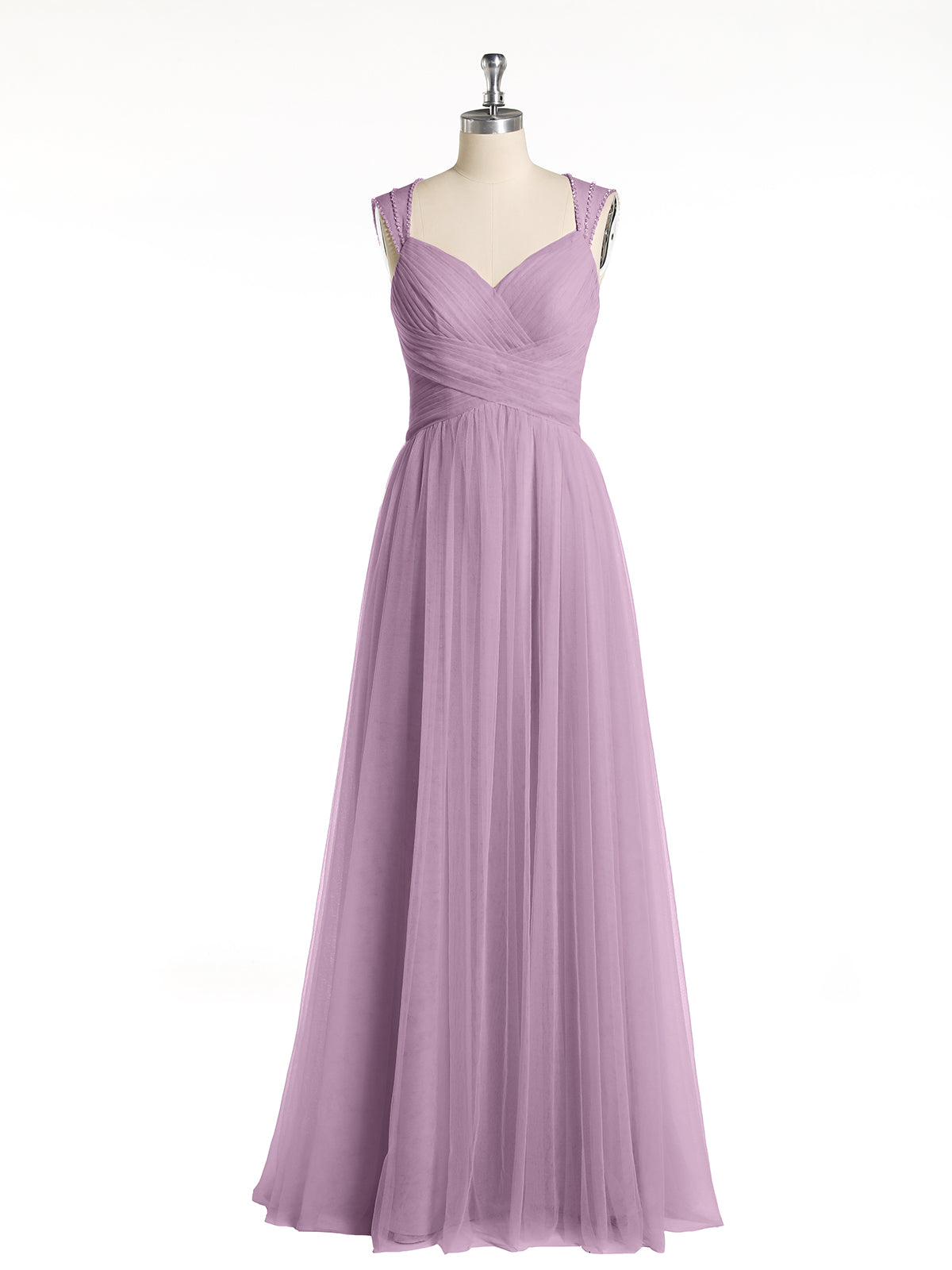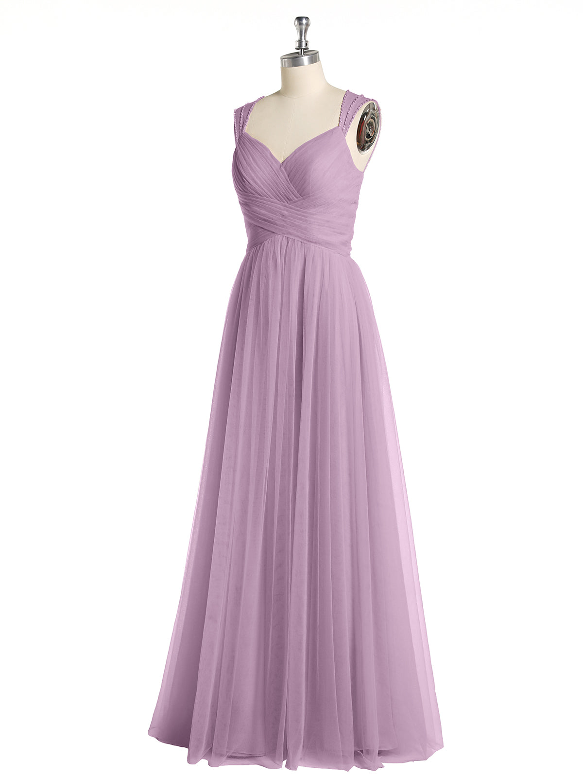 Cross-Pleated Tulle Long Dresses with Beaded Straps Wisteria Plus Size