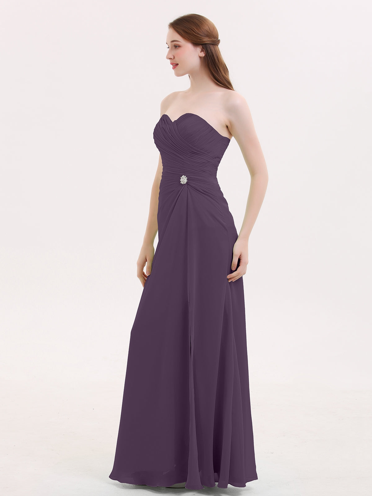 Strapless Sweetheart Neck Dress with Slit-Plum