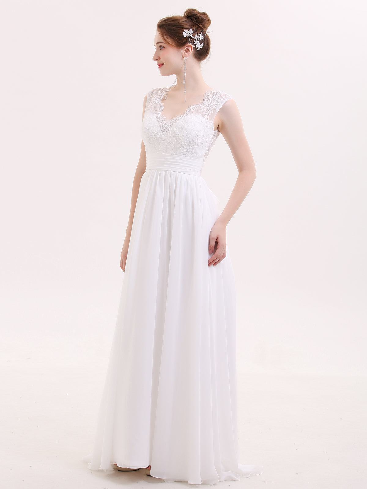 It is very comfortable, and would be perfect for a beach wedding, playing in the waves in. I love the neckline and was able to move around without restriction.